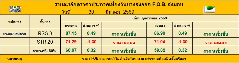 ยางแผ่นรมควันชั้น 3 ราคาก่อนหน้านี้86.66ราคาวันนี้   ราคาเพิ่มขึ้น  https://rakayang.net/vip/view.php?idr=31476